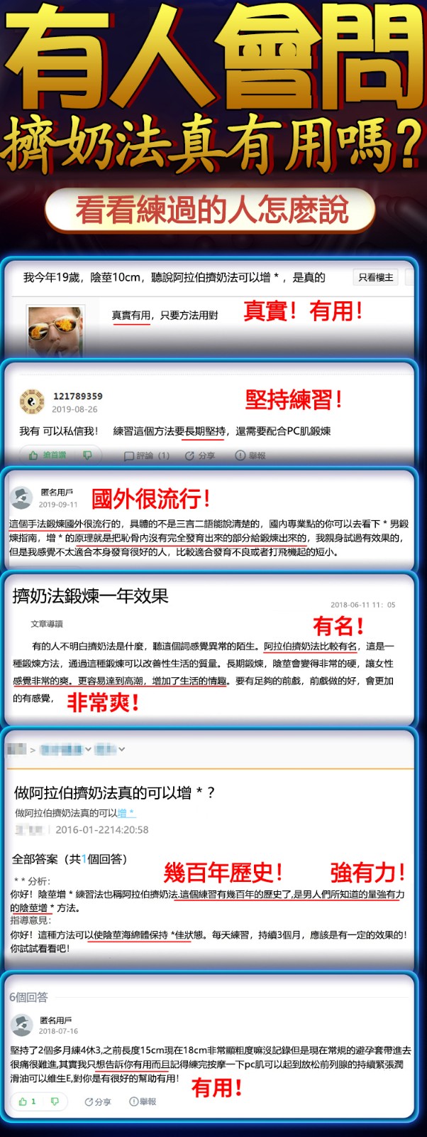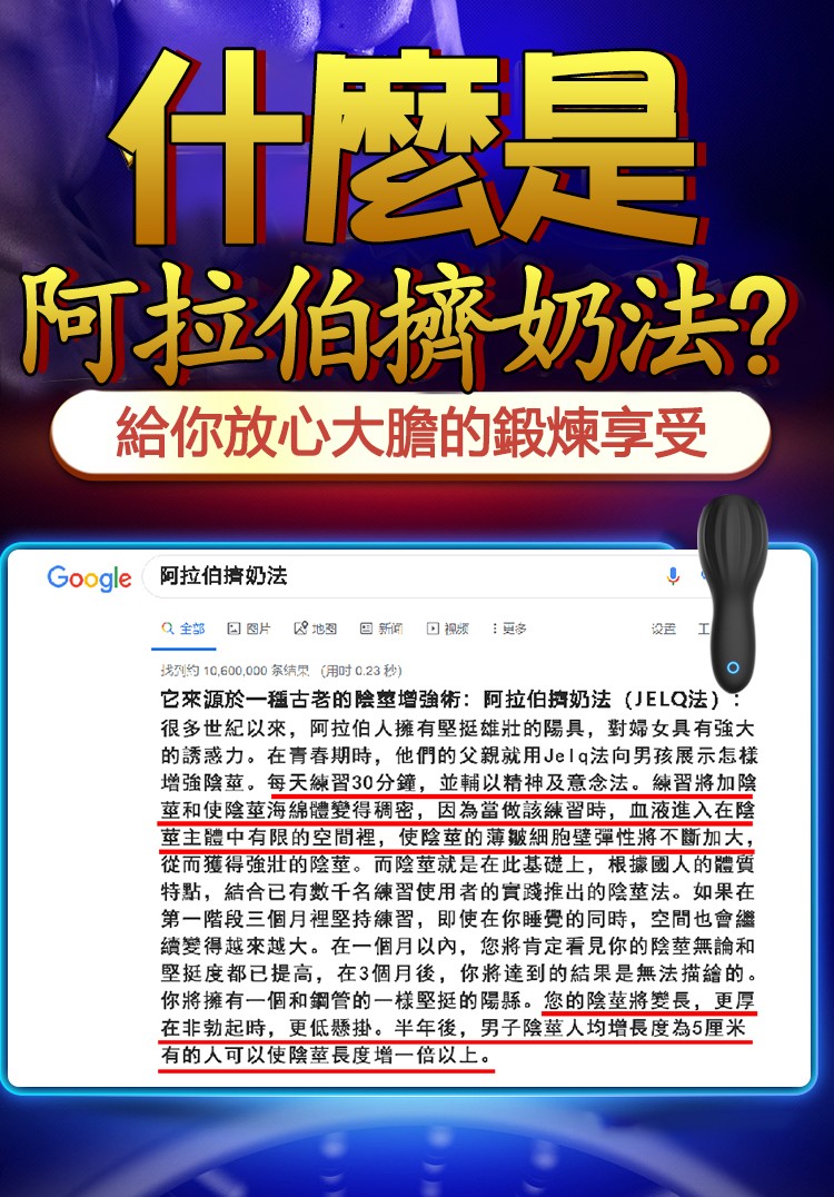 “阿拉伯擠奶法”是一種增強男性能力的鍛練法,近年在全球非常火爆!台灣眾多男性增強俱樂部都推崇此法,很多人按此法鍛練後都更耐久、更堅挺,夫妻生活上升好幾個檔次,實踐效果出乎意料的好!