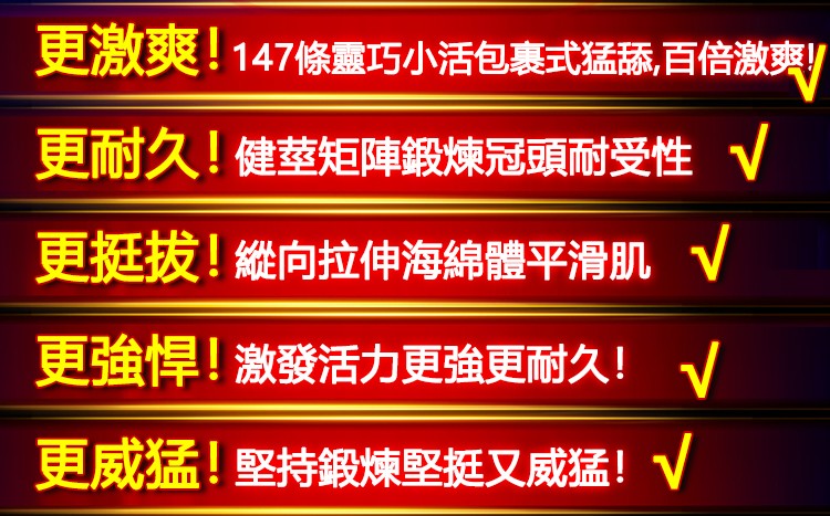 我老公使用了(硬悍健莖器)後,現在老公每次都是勢不可擋的插入我的陰道,我們甚至做愛能達到了 1 小時 47 分鍾。他的陰莖在性交時像鐵一樣堅硬!當我們達到性高潮時,我終於知道它是如此奇妙和讓人愉快......我這輩子從未體驗過如此驚人的滋味!我想每個女人和男人都值得體驗,如果體會不到的話,那真的太可惜了。確實一開始我隻是希望這個産品能治療好他的勃起、早洩問題,我並不知道它有這麽神奇的效果,這麽讓人舒服,而且這麽有效...