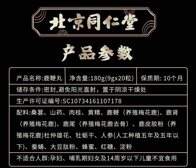 北京同仁堂鹿鞭丸膏男性滋補人參鹿腎鹿茸180g/盒