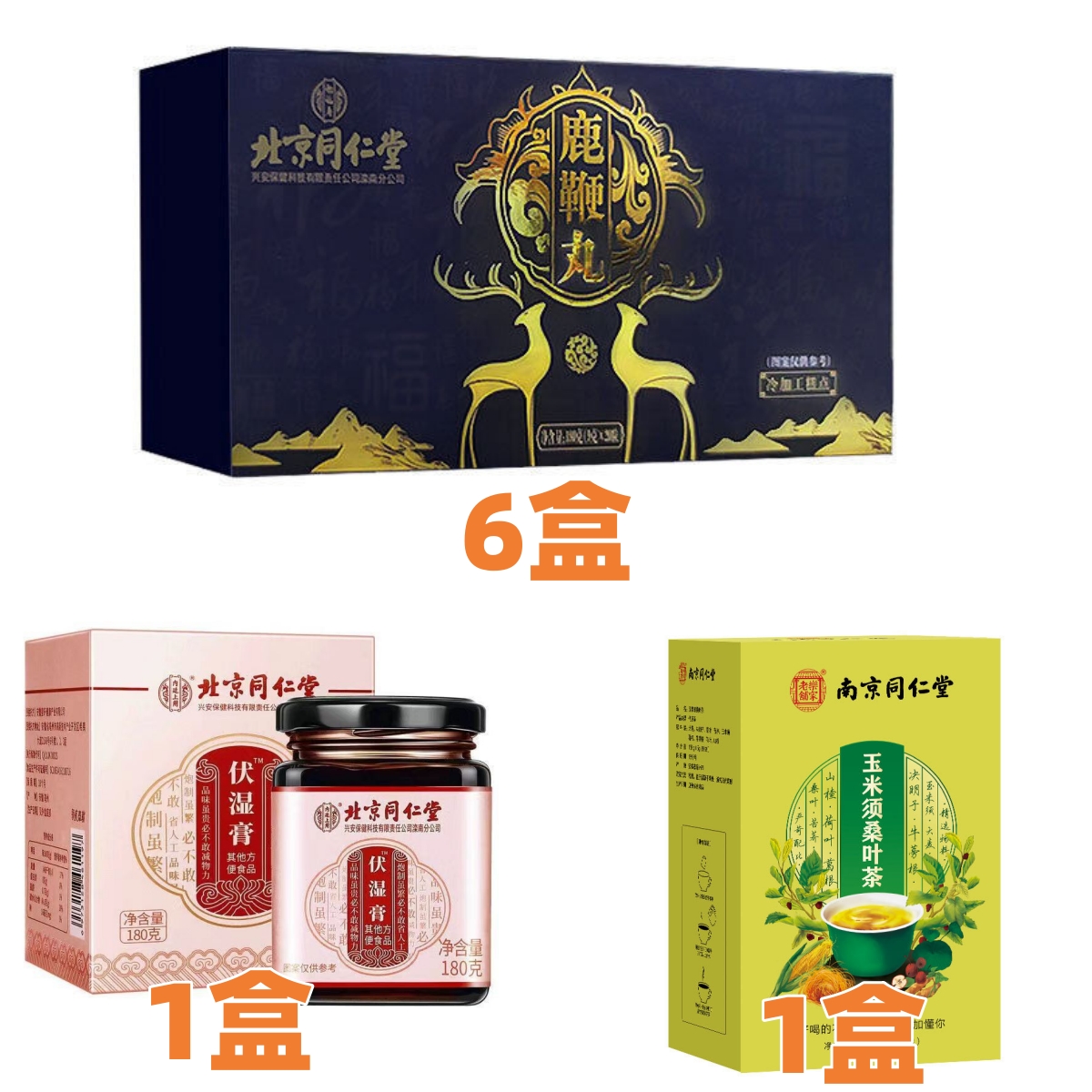 北京同仁堂鹿鞭丸膏男性滋補人參鹿腎鹿茸6盒+贈同仁堂伏湿膏1盒+同仁堂玉米須桑葉茶1盒